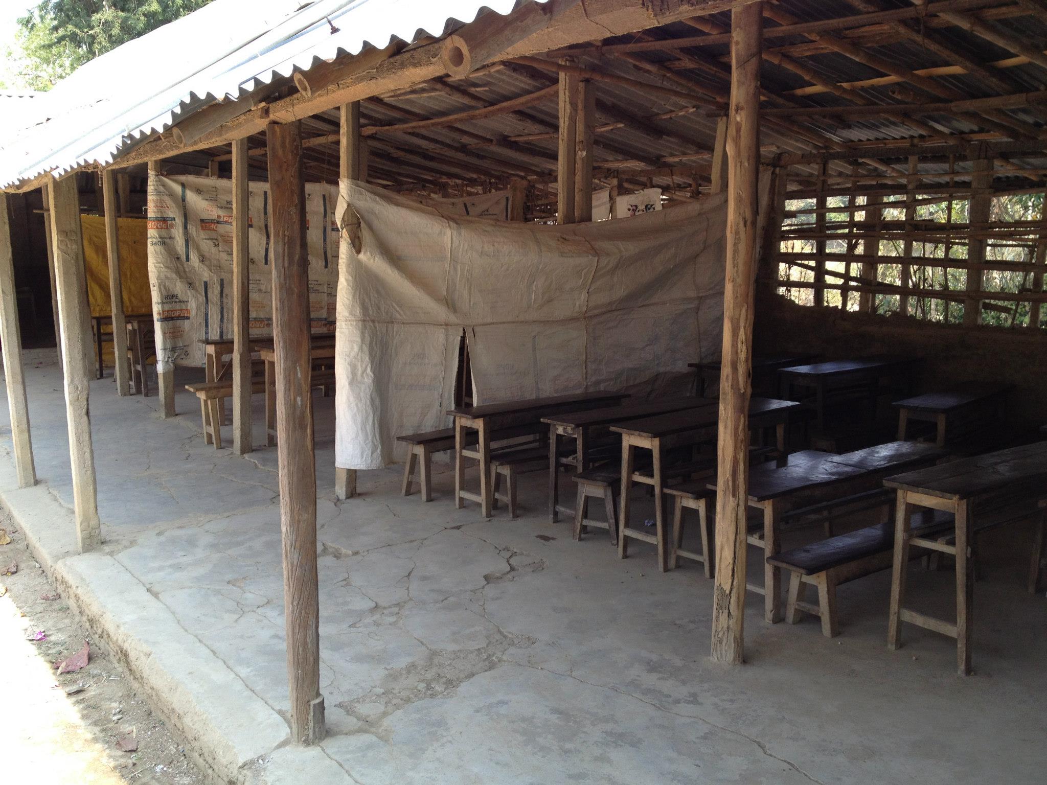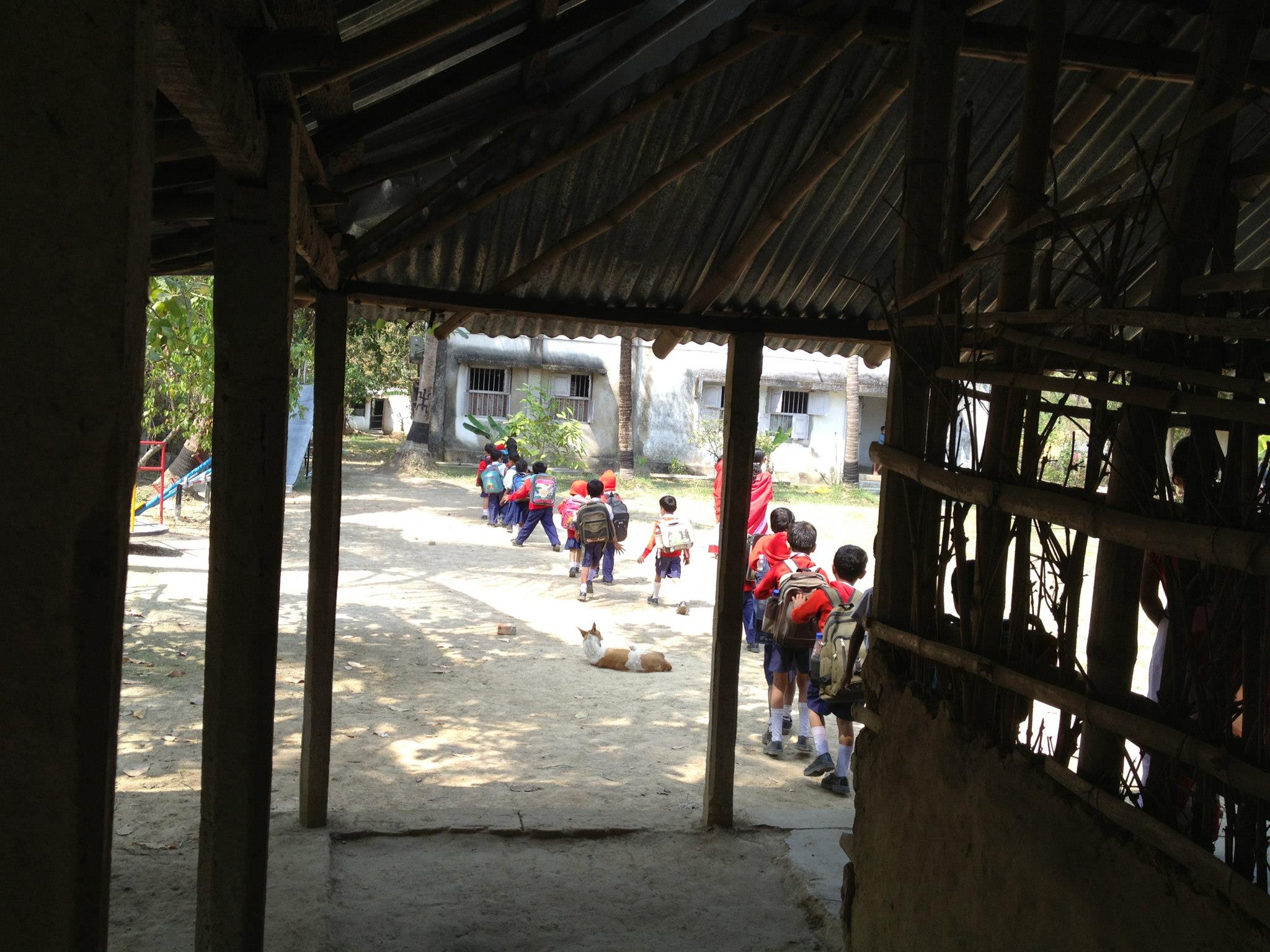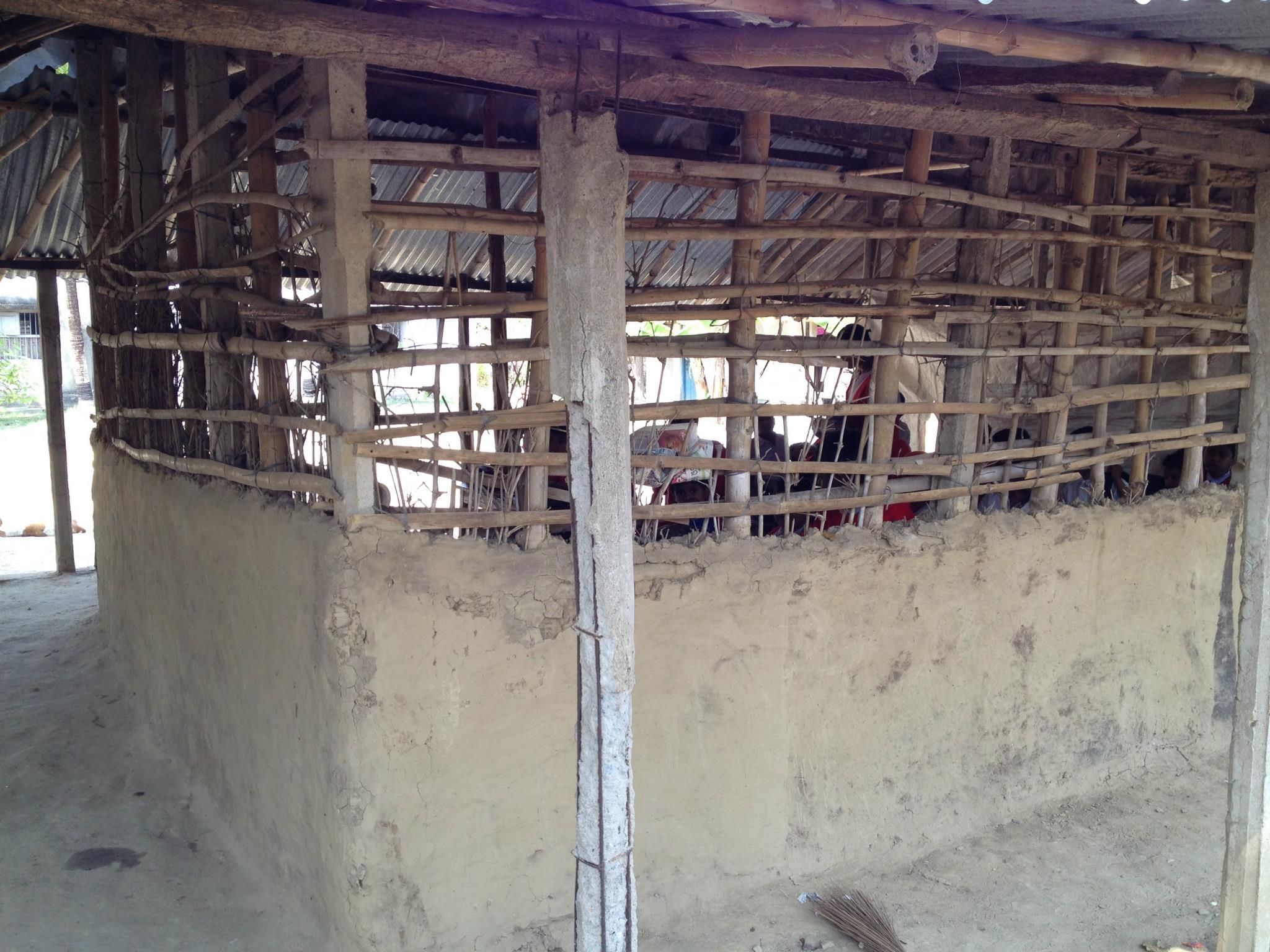 I was sad to see the condition of the school building. A rogue storm, last year, destroyed part of the structure. Instead of proper walls separating the classrooms, they now have screens made from jute bags. Parts of the walls are missing. The roof protects them from the sun but I am not sure whether it will keep them dry during the monsoons.