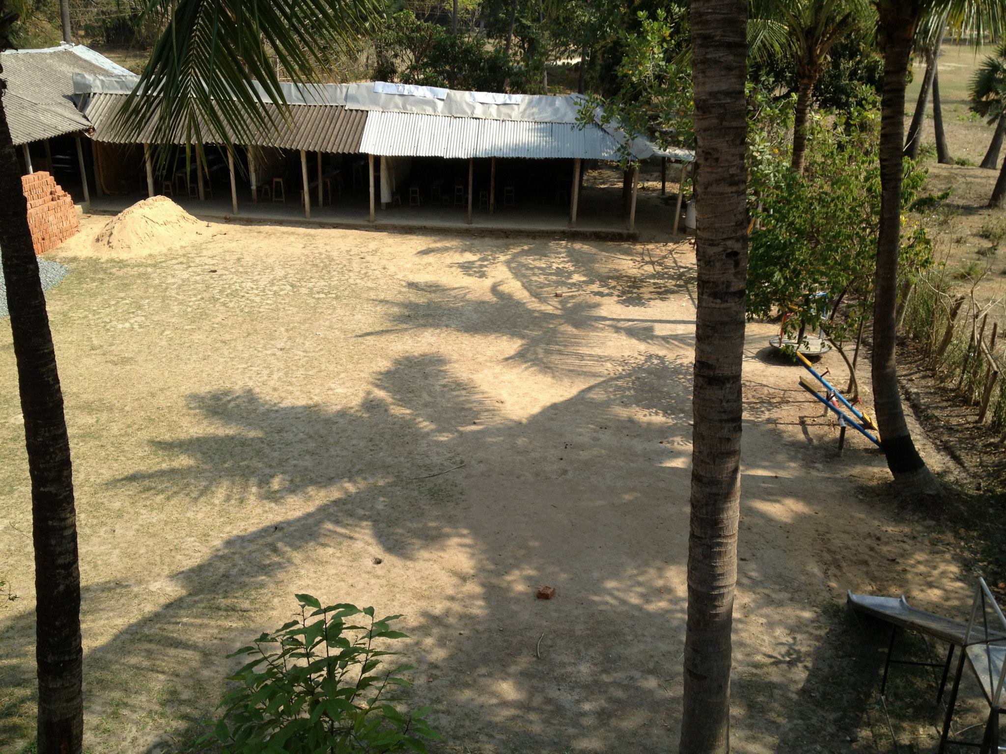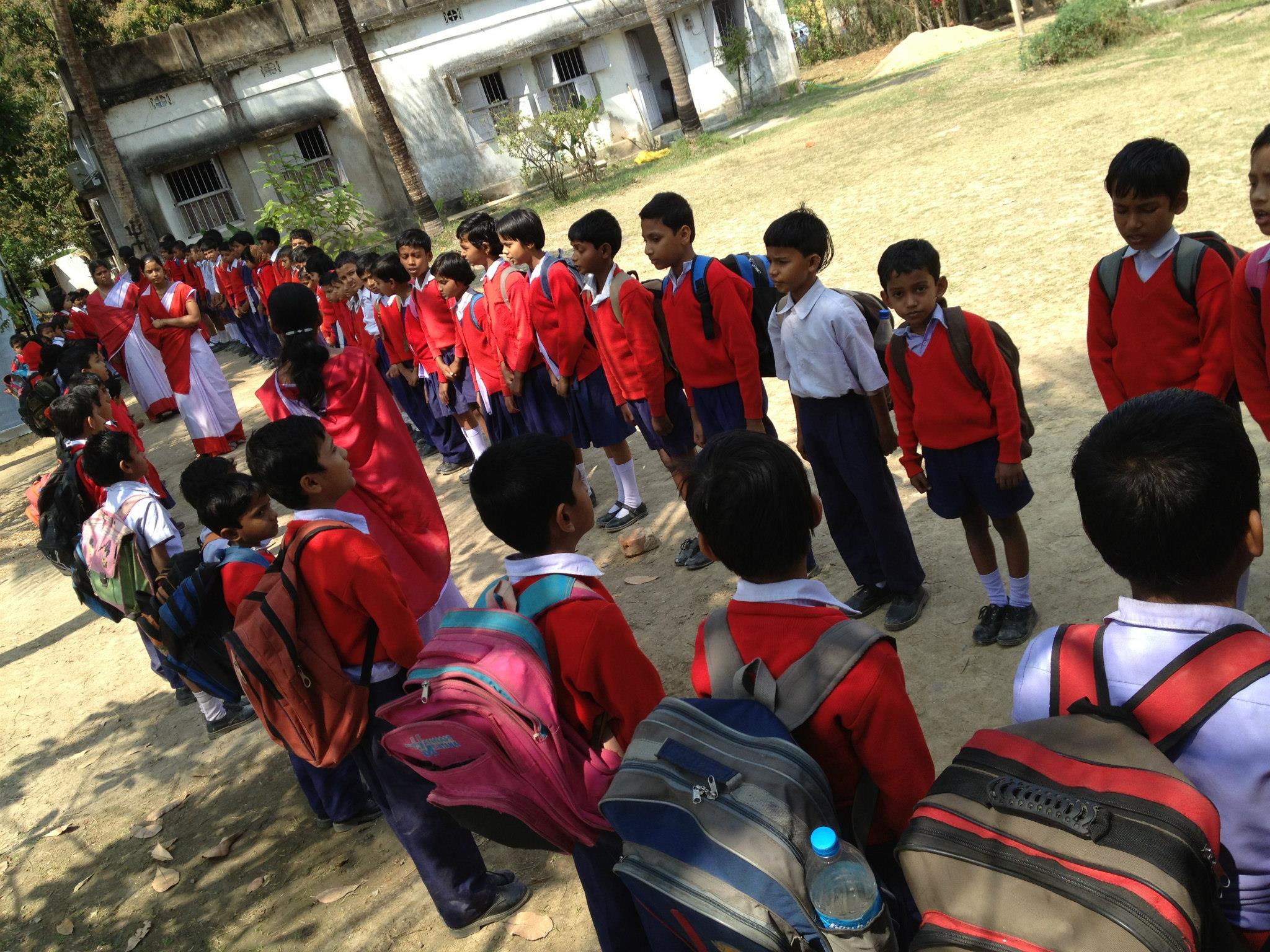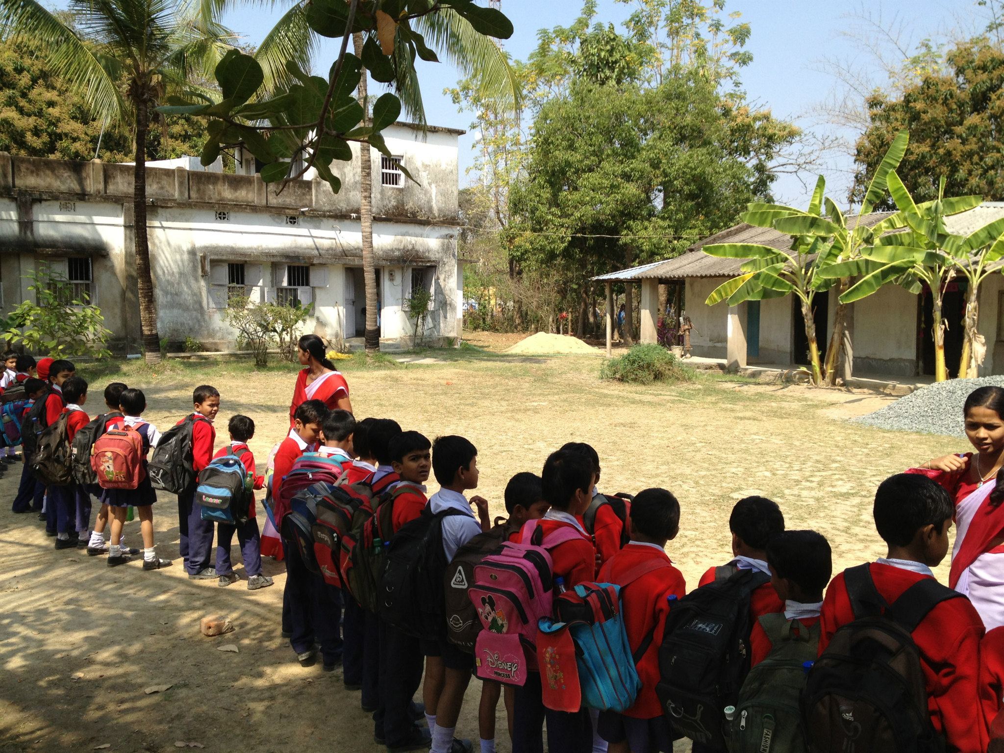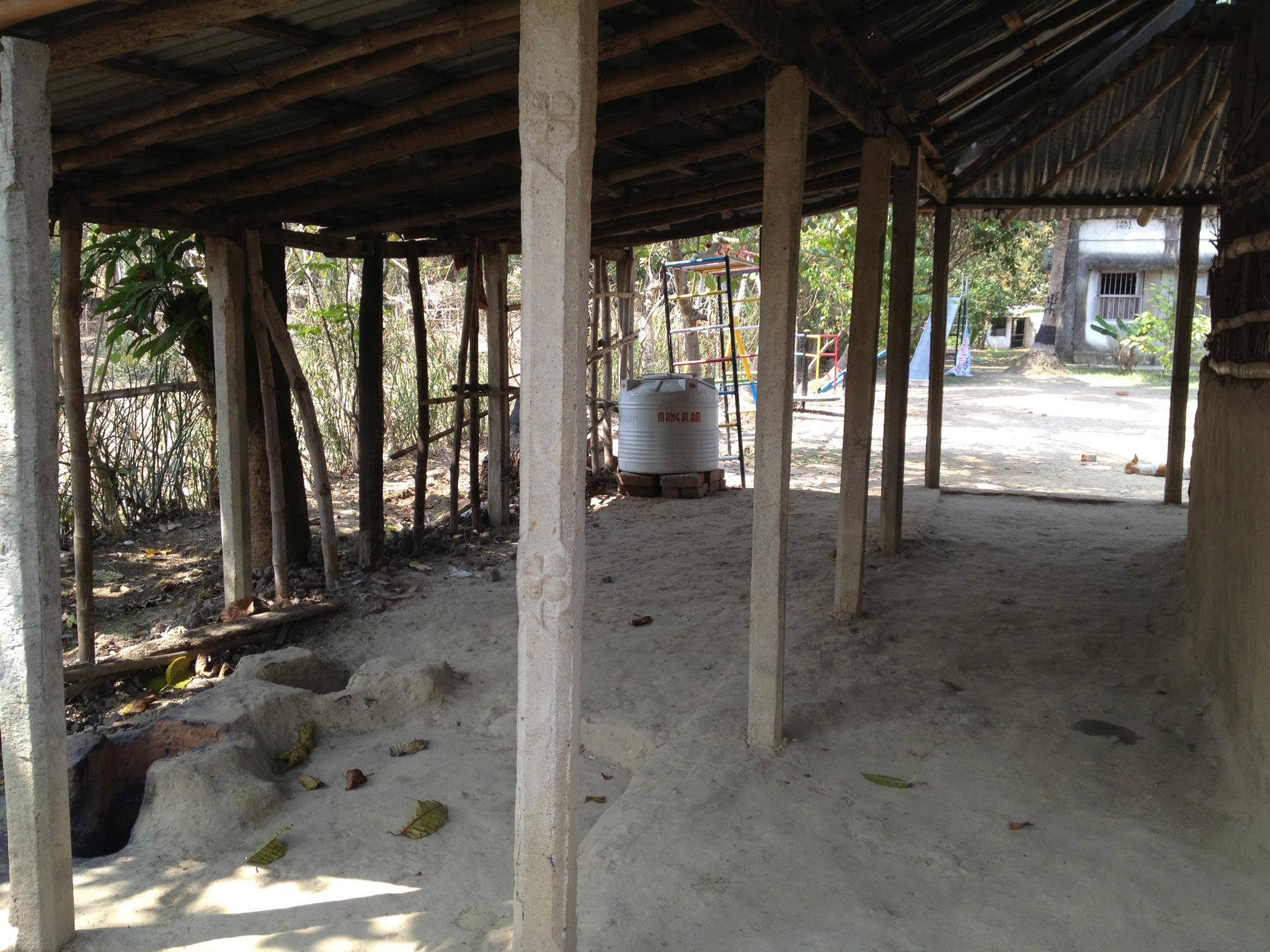 I was sad to see the condition of the school building. A rogue storm, last year, destroyed part of the structure. Instead of proper walls separating the classrooms, they now have screens made from jute bags. Parts of the walls are missing. The roof protects them from the sun but I am not sure whether it will keep them dry during the monsoons.